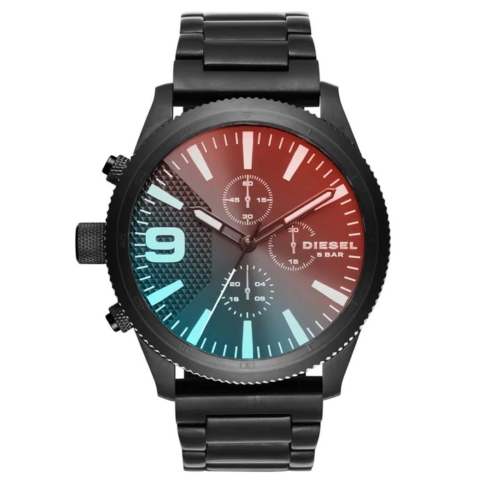 Relógio Diesel Masculino DZ4447/4PN possui mecanismo Analógico, a pulseira é na cor Preto, fabricada em Aço, com 25 cm de comprimento e possui Fecho dobrável com Dois Botões. A Caixa (peça onde fica o mostrador) é fabricada em Aço, mede 5,0 cm, sem considerar a coroa, e 1,2 cm de espessura. O Relógio Diesel Masculino DZ4447/4PN tem nível de resistência à água especificado em 5 ATM. Com relação as funções adicionais do Relógio: possui Calendário Analógico com Data e Cronógrafo Analógico.